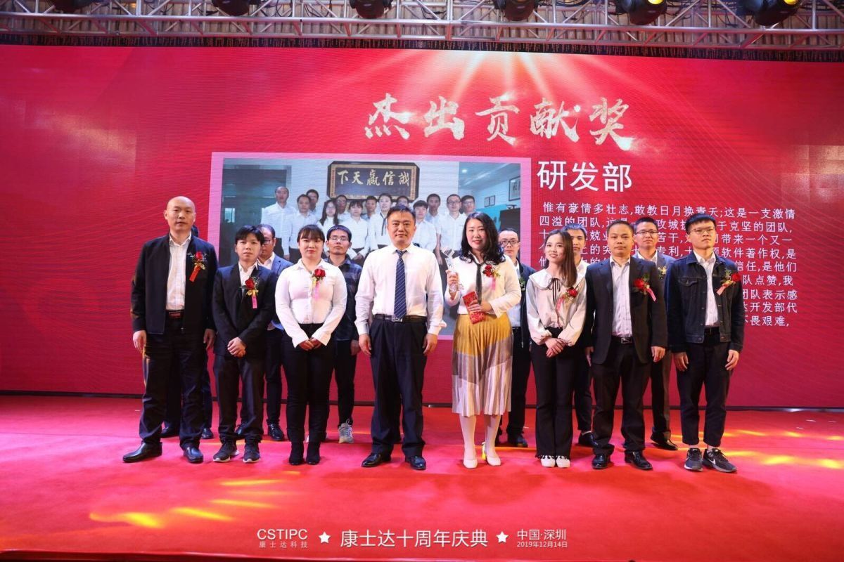 同時,袁強代表康士達感謝一起攜手沐風櫛雨的合作伙伴,以及一直勤懇工作的康士達人。2019年在大環(huán)境的考驗下,康士達依然取得不錯的成績,這歸功于研發(fā)部工匠精神,并現(xiàn)場授予該部門杰出貢獻獎。