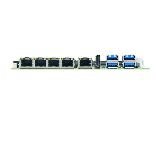 該主板配備2個DDR5 SO-DIMM內存插槽,最大內存支持為96GB;板載HDMI、VGA和eDP顯示輸出接口,支持 4K超高清顯示輸出;集成1個SATA3.0硬盤接口、1個M.2 2280 M-key SSD擴展槽,默認NVMe,BOM可選為SATA3.0;板載5個Intel 2.5Gbps網口,其中4個網口支持POE供電;1個MINI-PCIE接口,并配有1個SIM卡座,支持WIFI/4G;集成6個USB接口,其中4個為USB3.1,2個USB2.0;集成2個串口,其中可選1個RS485接口;2組8路GPIO插針;主板采用9~36V直流寬電壓供電輸入。